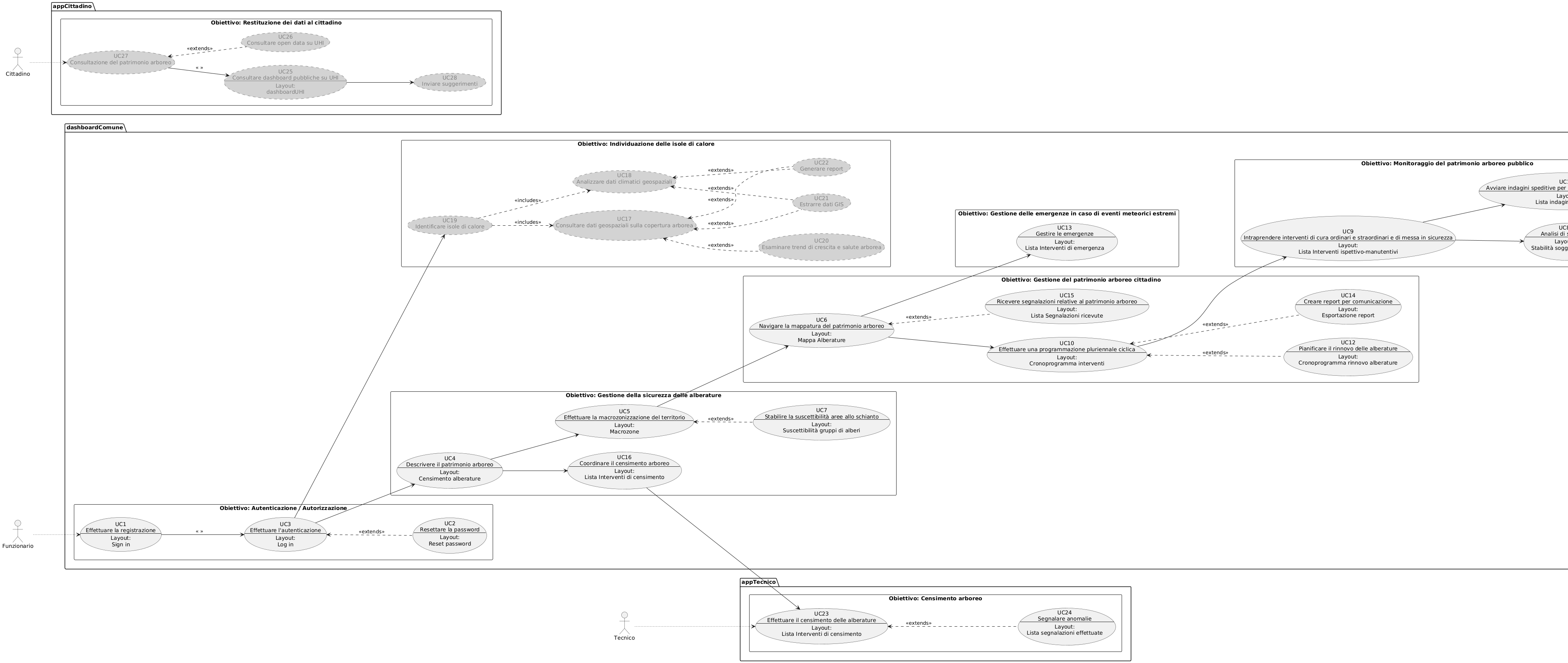 | P1_UC12 Pianificare il rinnovo delle alberature | todo | Identificazione delle alberature da rinnovare, confronto con le informazioni di suscettibilità e selezione di specie compatibili con lo spazio disponibile e le condizioni ambientali. |